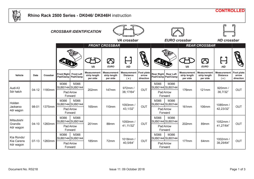 Rhino-Rack's DK kits are used in all the 2500 roof rack systems. The kit consists of the pads and clamps which attach to your vehicle's roof. The kit includes 4 pads and 4 clamps.