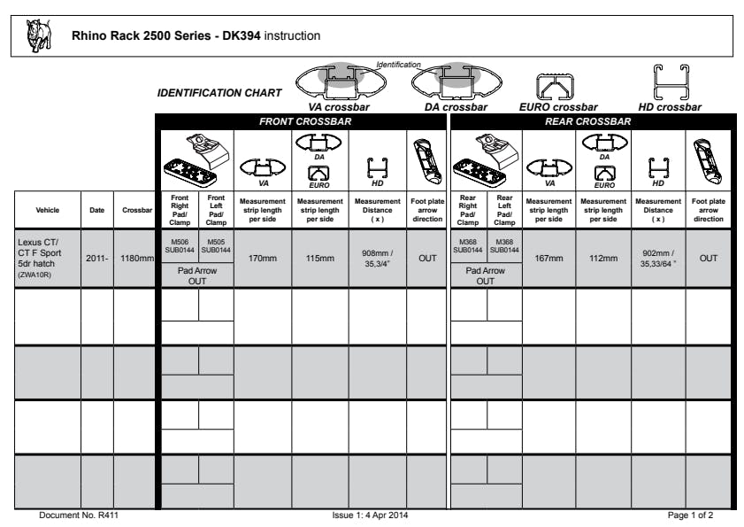 Rhino-Rack's DK kits are used in all the 2500 roof rack systems. The kit consists of the pads and clamps which attach to your vehicle's roof. The kit includes 4 pads and 4 clamps.