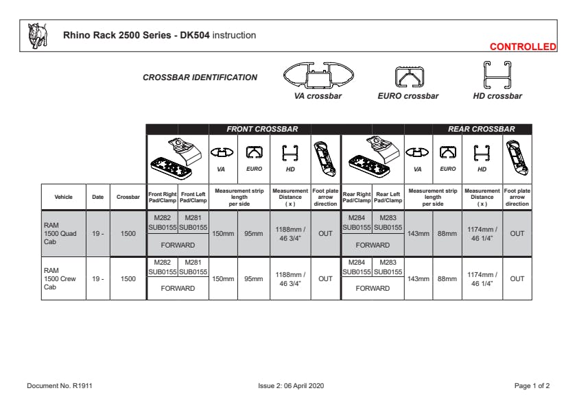 Rhino-Rack's DK kits are used in all the 2500 roof rack systems. The kit consists of the pads and clamps which attach to your vehicle's roof. The kit includes 4 pads and 4 clamps.