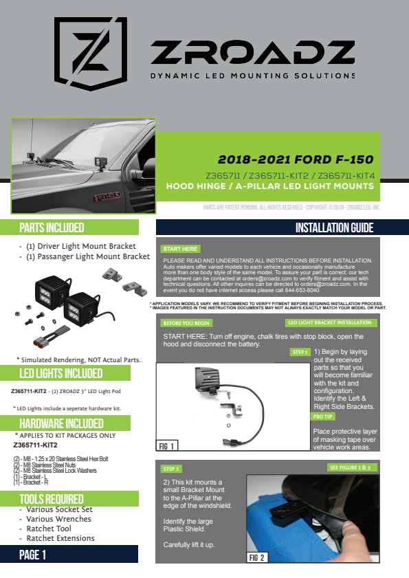ZROADZ Hood Hinge LED Mounts, commonly known as ditch light brackets, and kits are one of the easiest upgrades to add auxiliary lighting to a vehicle. The small low profile package adds functional utility and the mounting brackets are a simple, no drill, bolt on installation utilizing the factory hood attachment points to mount to the vehicle. Simply loosen the factory hood bolts, slide the ZROADZ bracket into place and re-tighten the bolts. These versatile kits are ideal for lighting the trail, or a work area. ZROADZ Hood Hinge bracket mounts are designed and manufactured in USA.