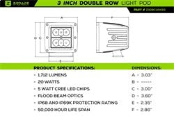 - Incl. [1] 50 in. LED Double Row Light Bar And [4] 3 in. LED Pods