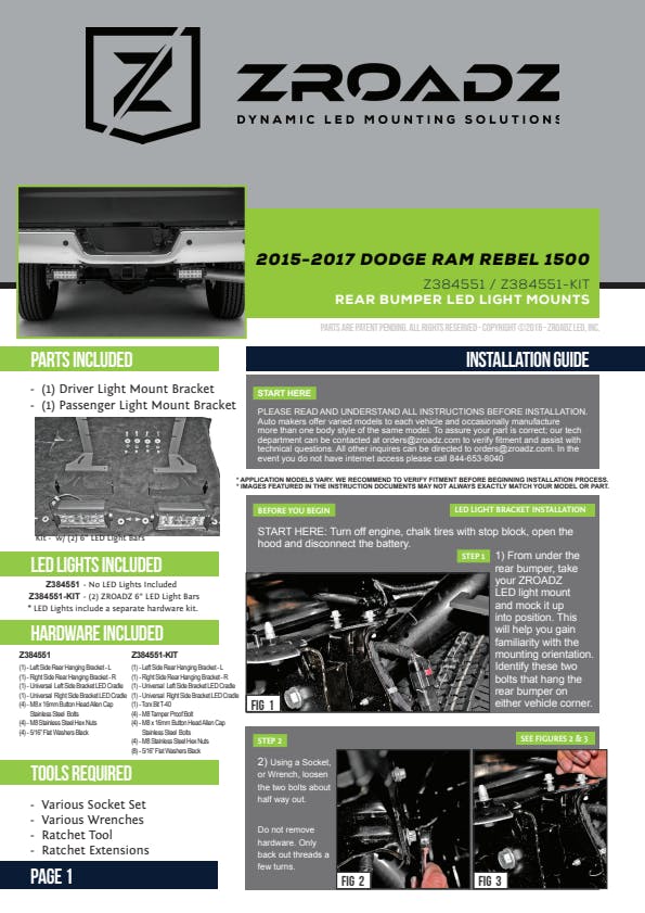 ZROADZ Rear Bumper LED Mounts and kits are a great way to add a pair of rear facing, LED lights to the back of most popular late models foreign and domestic trucks. The Bracket mounts position lighting down low at the rear of the vehicle ideal for super high powered, manually activated back up lights or scene lighting to illuminate a large area. The simple bolt on installation, uses factory bolt mounting locations and requires no drilling. Simply loosen the pre-determined bolts, slide the ZROADZ bracket into place and retighten the bolts. ZROADZ Rear Bumper LED Mounts are available in complete kits with light and wiring harness, or as brackets only for mounting common and popular LED lights. ZROADZ Rear Bumper LED Mounts are designed and made in USA.