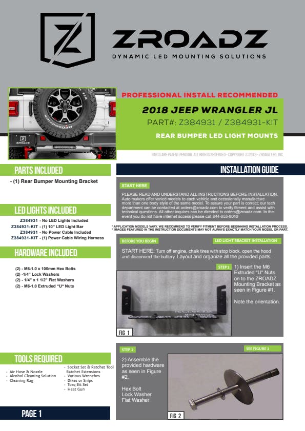 - Incl. [1] 10 Inch ZROADZ LED Single Row Slim Light Bar