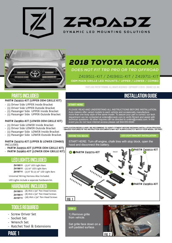 - Sold as a complete kit, Includes (2) 6 Inch and (2) 10 Inch ZROADZ LED Straight Single Row Slim Light Bars, mounting brackets, wiring harness with fusible link, relay, toggle switch and all necessary hardware